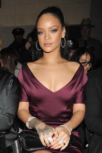 Rihanna osallistui Zac Posen Fall/Winter 2015 -muotinäytökseen New Yorkin Vanderbilt Hallissa. Kaupungin muotiviikkojen kunniaksi poptähti oli tällä kertaa sonnustautunut poikkeuksellisen elegantiksi tavallisten räväköiden asujensa sijaan.