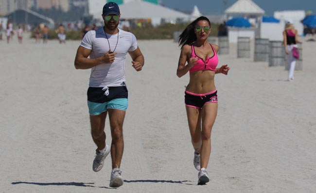 Eilen Priscilla Salerno kuvattiin lenkkeilemässä Miamin maisemissa. Ettei hiki pääsisi yllättämään, oli hän sonnustautunut lenkille bikineihin. Lopulta oli kuitenkin tarpeen käydä puhaltamassa meressä, jolloin kaunotar riisui rintansa paljaaksi.