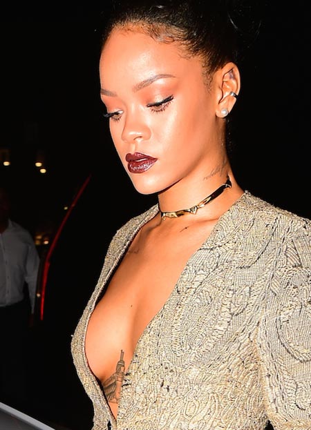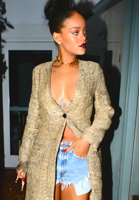 Nyt Rihanna on kuvattu poistumassa Giorgio Baldi -ravintolasta illallistettuaan sitä ennen kolmen tunnin ajan managerinsa Jay Brownin kanssa. Rihannan rohkea asuvalinta tuntui paljastavan rintamuksen minä hetkenä hyvänsä, mutta niin ei lopulta käynyt.