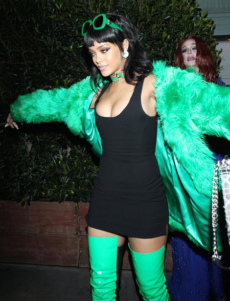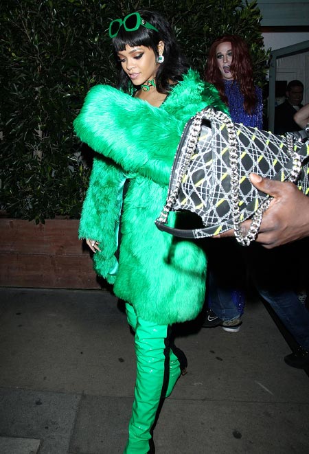 Eilen illalla Rihanna kuvattiin poistumassa Santa Monicassa sijaitsevasta Il Ristorante di Giorgio Baldi -ravintolasta. Poptähti oli pukeutunut räikeänvihreään asuun, jonka alta pilkotti melko tavallinen rohkea musta toppi.