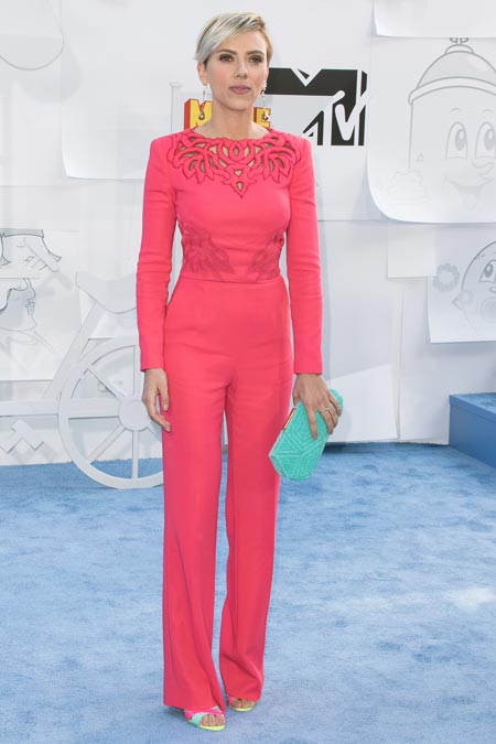 Scarlett Johansson säteili punaisella matolla pinkissä jumpsuitissaan, joka on Daily Mail -lehden mukaan Zuhair Muradin uusimmasta mallistosta. Jumpsuitissa on näyttävä koristelu pääntiessä, ja asu korostaa kauniisti pienen lapsen äidin upeita muotoja ja hoikkaa keskivartaloa.
