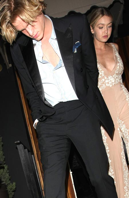 Gigi Hadid ja hänen artisti-poikaystävänsä Cody Simpson ikuistettiin eilen heidän poistuessaan illalliselta. Gigi oli sonnustautunut upeaan ja melko paljastavaan iltapukuun, kun Cody oli puolestaan turvautunut hieman konservatiivisempaan asuvalintaan.