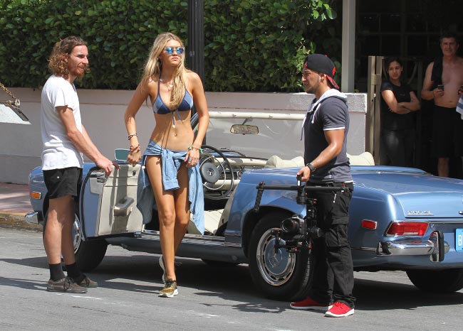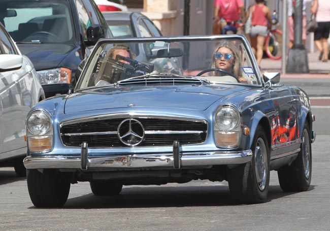 Eilen Gigi Hadid nähtiin ajelemassa klassisella avomersulla Miami Beachilla, jossa hän oli kuvaamassa Seafolly Swimwearin mainosta. Auto kiinnitti huomiota, mutta pysäköinnin jälkeen sieltä noussut bikiniasuinen supermalli meni jo autonkin saaman huomion ohi.