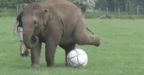 Viihdeuutiset 3.6.2012, 10:30 Awww, elefantti treenaa kompastellen jalkapalloa – ihastuttava tulos Ihmiset kouluttavat usein eläimiään mitä erilaisimpiin taitoihin, joita nähdään silloin Facebook Twitter Sähköposti Whatsapp